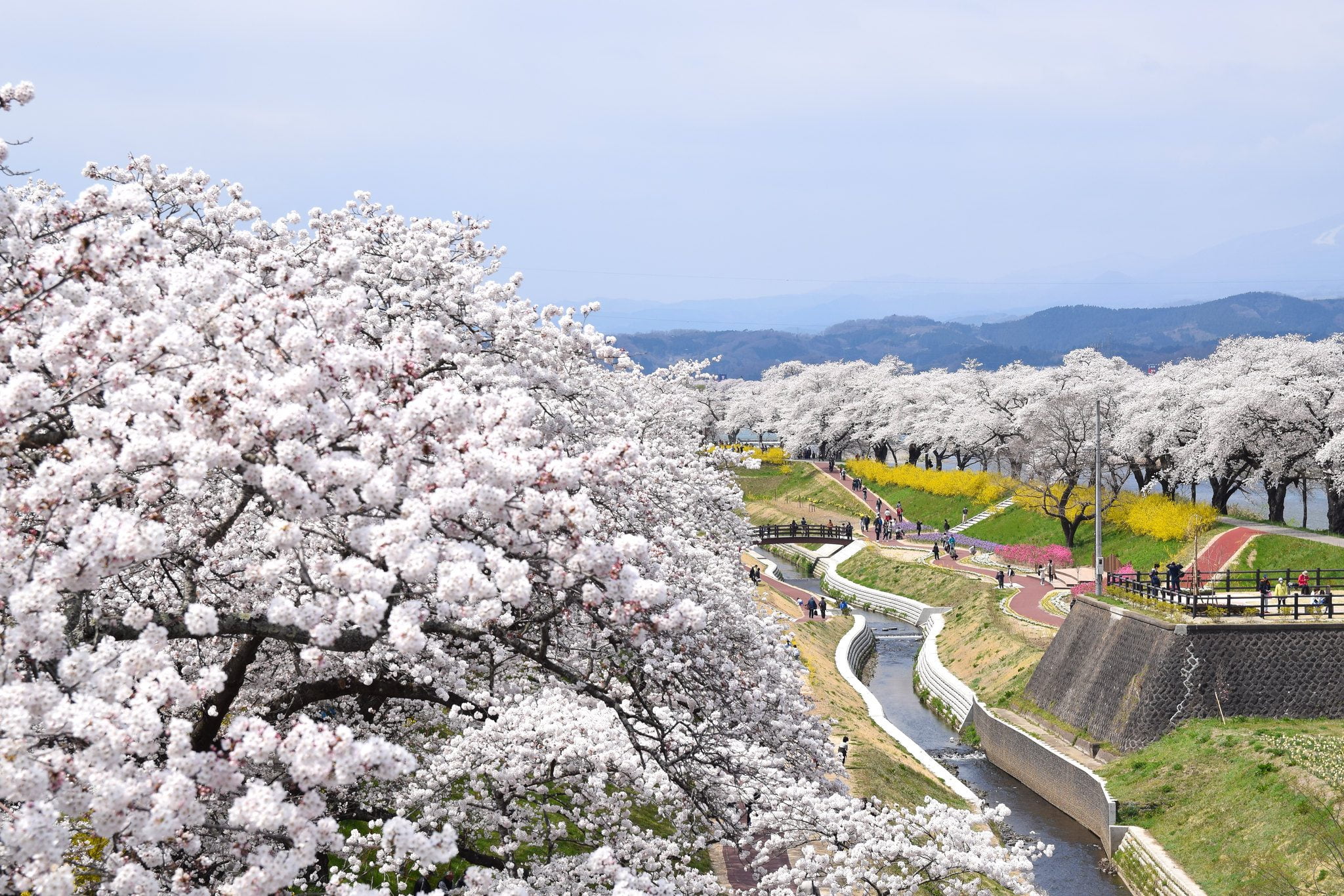 Orilla del río Shiroishi Hitome Senbonzakura 白石川堤一目千本桜 Shiroishigawa tsutsumi hitome senbon zakura