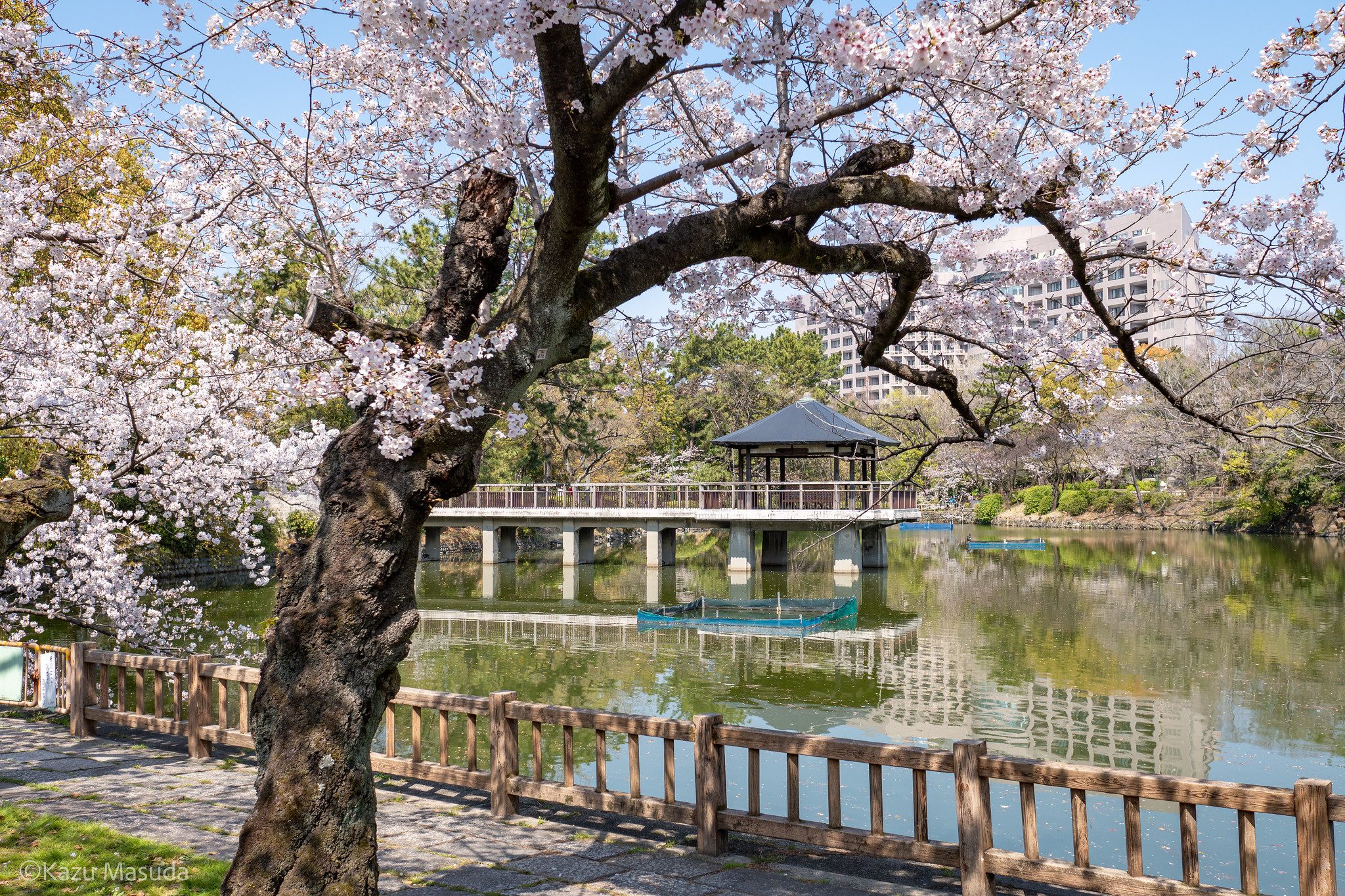 竜ヶ池(鶴舞公園)の桜 Flores de cerezo en Ryugaike (Parque Tsurumai) by Kazu Masuda bajo licencia CC-BY-NC-ND-2.0-DEED